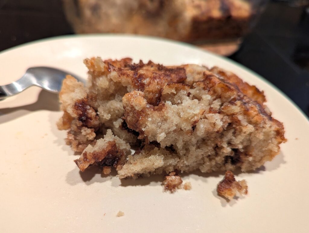 Actually went scrolling back through my saved posts over there, looking for something sweet and easy I’d hoarded back that we had all the ingredients for. 😅 This one sounded promising. As it was, I ended up complicating the thing more by adding the obligatory pinch of salt and a little vanilla which sounded like it should be good. The coffee cake you make when the cupboards are getting a little bare, and you’re about to flop over?