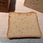 This is based off a recipe from King Arthur Baking: Gluten-Free English Muffin Bread, which had appealed to me for a while. It’s easy to make with hand mixing, and does carry a lot of the distinctive crumb texture of an English muffin.