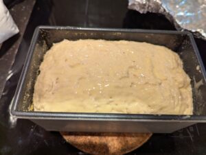 - Scrape the batter into the pan, and even it out. I tapped mine on a counter to level the surface out and knock out any air gaps.